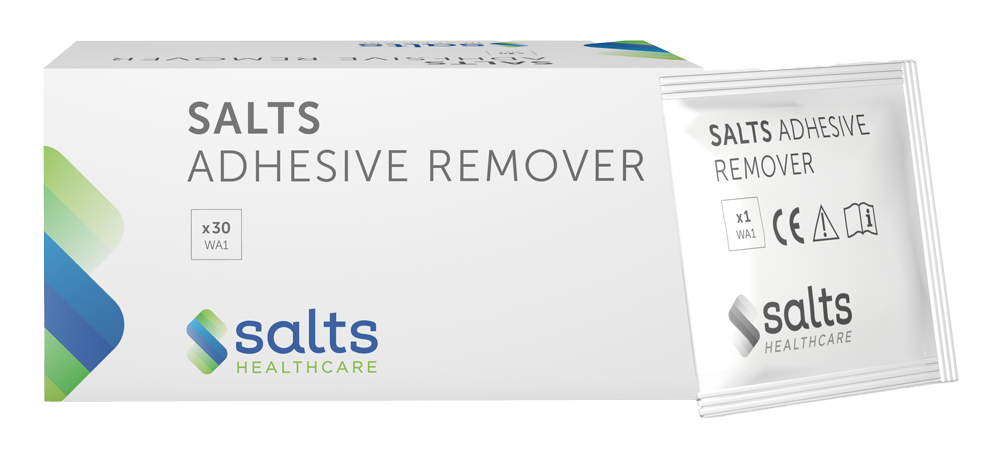 Salts Adhesive Remover effectively removes residue and refreshes, helping to leave skin clean and adhesive-free. Containing a non-sting formula with a natural peppermint fragrance, Salts Adhesive Remover helps to mask odour, leaving you feeling fresh after every change. Available in a spray or wipe.